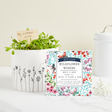- Simply wrapped in beautiful garden-themed tissue paper & tied with twine + greetings card of your choice