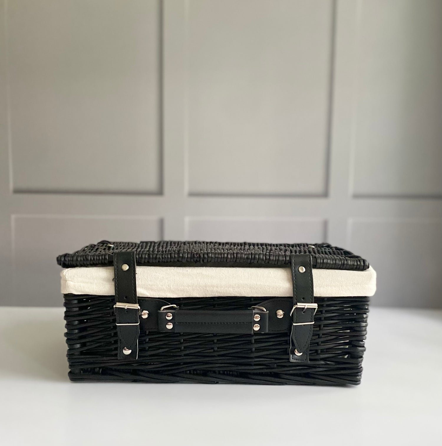 - Gift Hamper Box and Card with your message handwritten. There is also the option to upgrade to a willow lined hamper basket or wooden trug in place of the gift box.