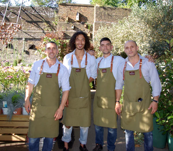 With their stylish rustic industrial feel the durable canvas fabric is combined with high quality brown leather straps and buckles, which mean the apron can be adjusted to your fit.