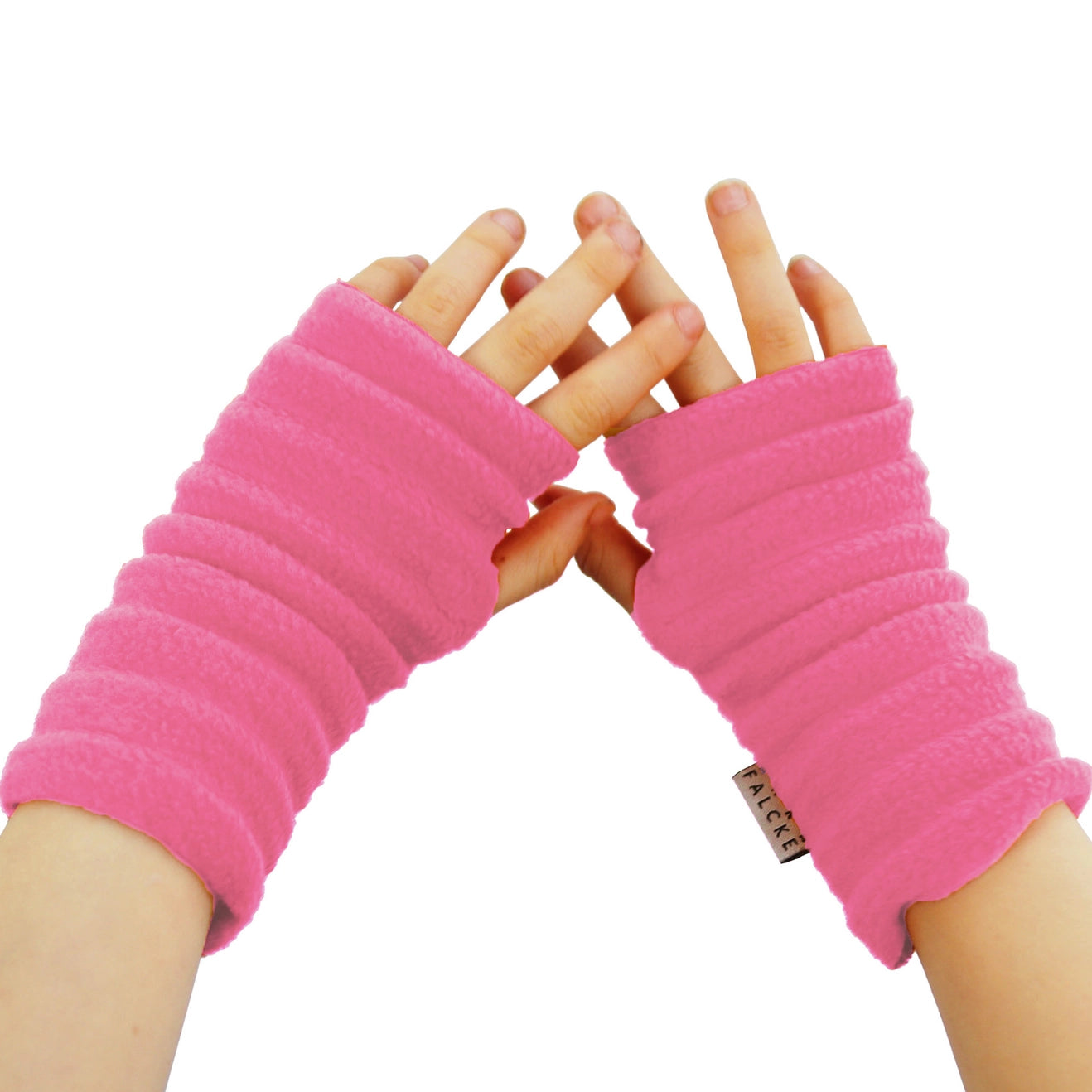 Soft pleated wristees® in hot pink or navy for children. Wristies keep you warm from the cold outdoors and indoors. A perfect choice for anyone who needs warm hands with their fingers free.