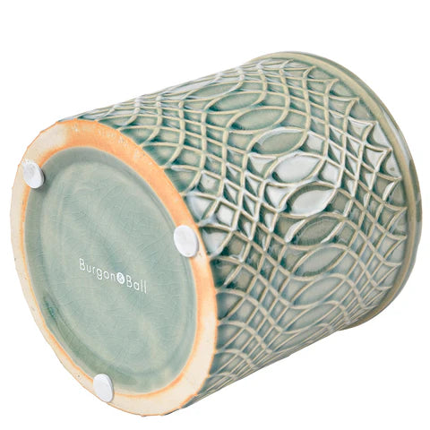 This Morocco pot in a beautiful soft celadon shade features a mesmerising raised geometric pattern. The subtle ridges hold the glaze during firing to create the varying colour intensities to enhance the curves of the design, for a very distinctive finish.
