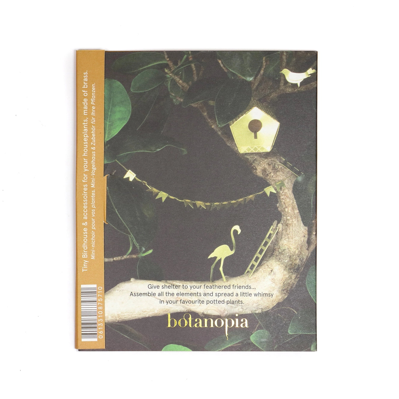 Add a touch of whimsy to indoor or outdoor plants with this adorable brass Tiny Birdhouse!