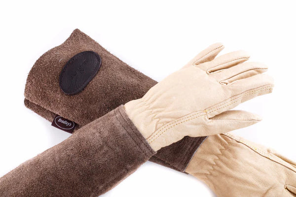 These gardening gloves are a Bradley's classic. With soft leather to protect your hands and long suede cuffs to protect your arms from brambles.