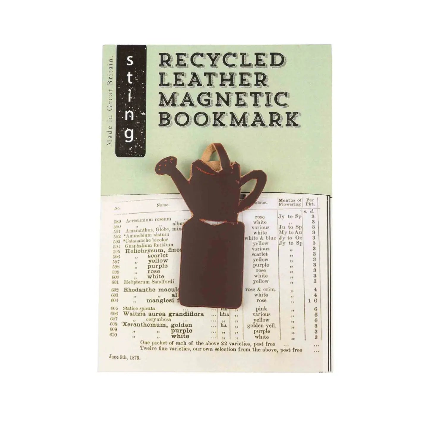 Watering Can bookmark made from recycled tannery waste, produced in the UK. Secures to the page with a handy magnet.