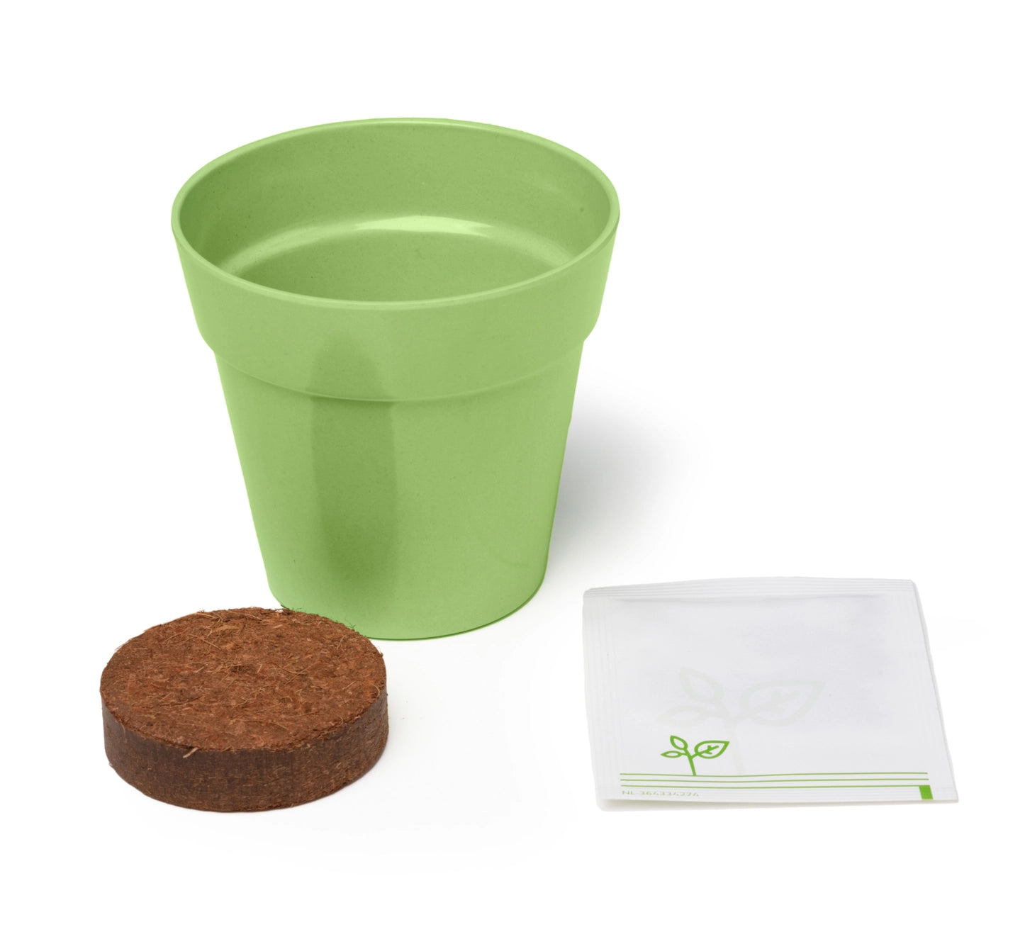 This vegetable seed growing kit contains a lime green 8cm bamboo plant pot, a peat-free coir disc and seeds: all you need to start growing Cucamelon plants on a sunny windowsill indoors.